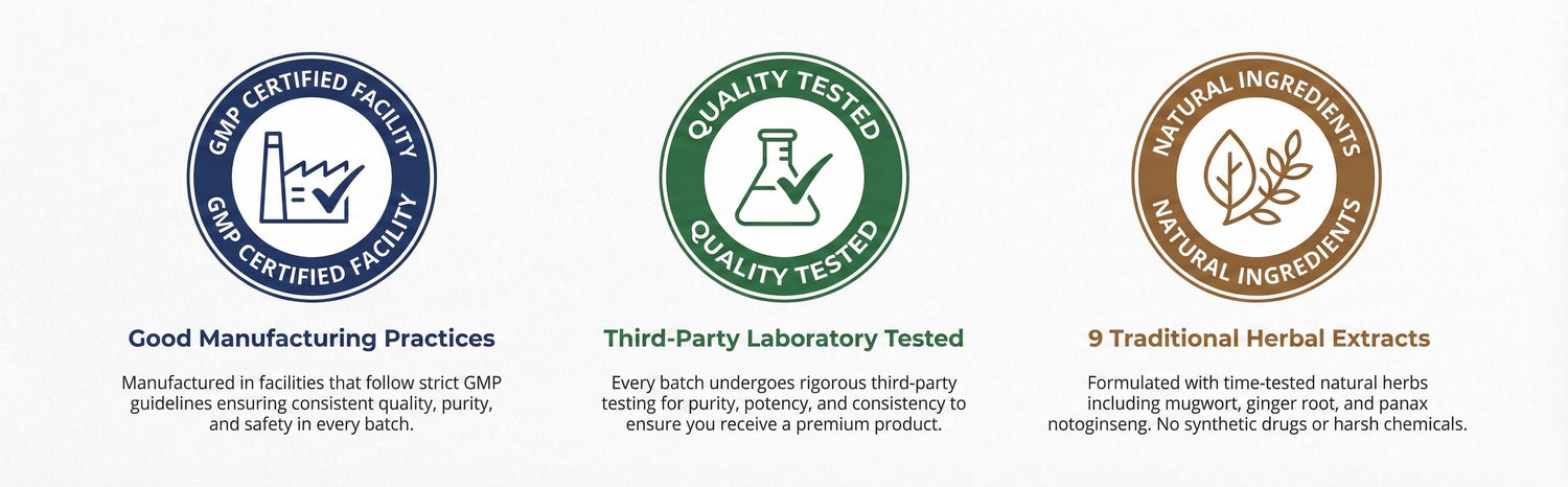 Drugstore patches use cheap synthetic compounds (menthol, methyl salicylate) that cost pennies to manufacture but don't penetrate deep enough. Authentic Kampo herbal formulas require premium-grade herbs, traditional processing methods, and the specific Borneol delivery mechanism. Quality ingredients cost more-but they actually work. Plus, our 4-week pack costs just over $2 per patch.